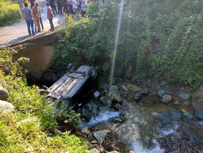 Alınan bilgiye göre, ilçeye bağlı Ağaran şelalesinden dönen Çoşkun A. (44) yönetimindeki 61 VV 507 plakalı otomobil, kontrolden çıkarak Köprübaşı köyündeki 4 metrelik köprüden düştü.