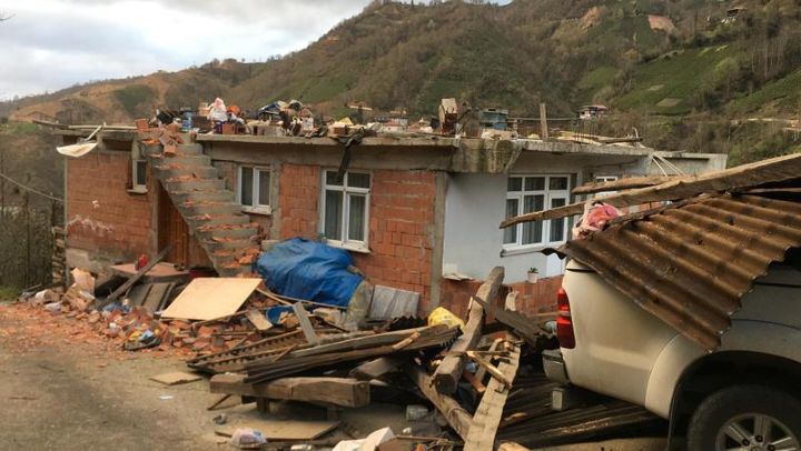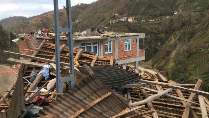 Rize'nin Çayeli ilçesine bağlı Madenli beldesinde fırtına, evlerin çatısını uçurdu. Uçan çatı parçaları çevredeki araçlara zarar verdi.