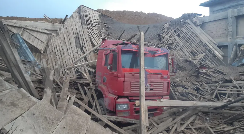 Erek Mahallesi Recep Tayyip Erdoğan Bulvarı yakınlarında bulunan bir parke fabrikasında kamyonlarının park edildiği garajın çatısı bilinmeyen sebeple çöktü.