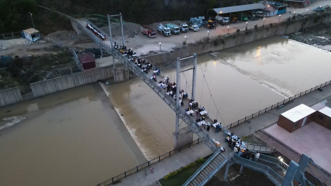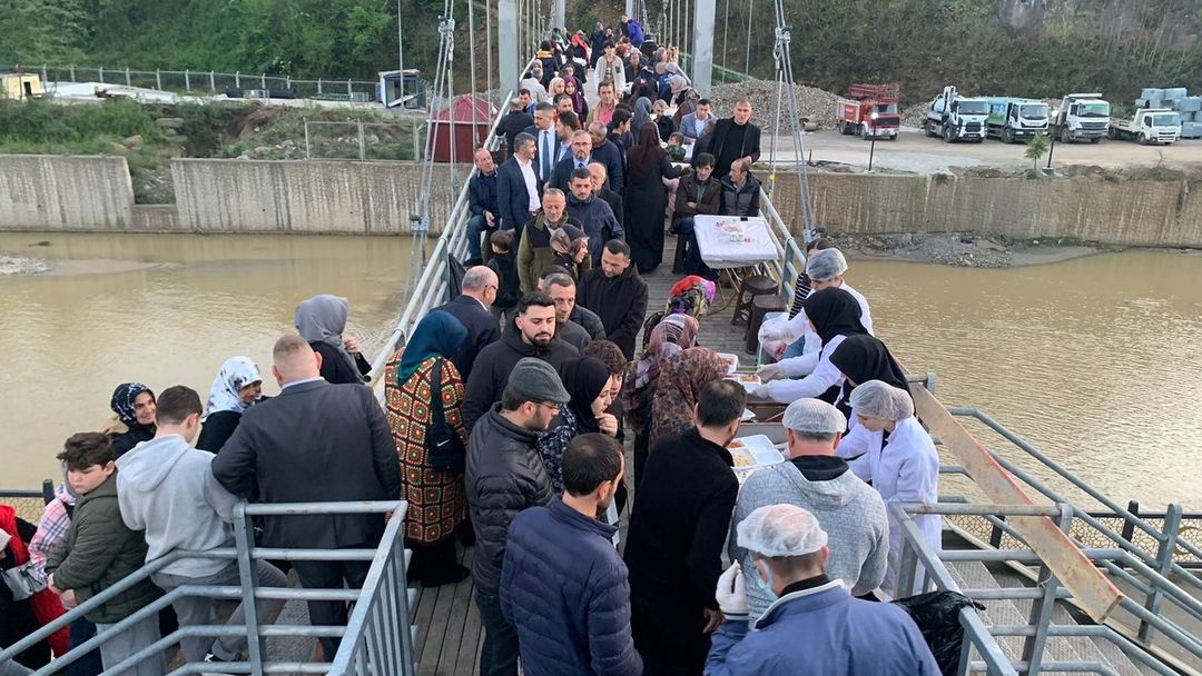 Rize'nin Çayeli ilçesine bağlı Madenli beldesinde yenilenip, 15 Temmuz Şehitler Köprüsü'ne benzetilen köprü üzerinde geleneksel iftar programı düzenlendi.