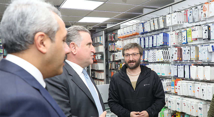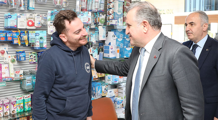Atatürk Caddesi'ndeki esnafı da ziyaret ederek işlerinde kolaylık dileyen Bak, sorun ve taleplerini dinledi.