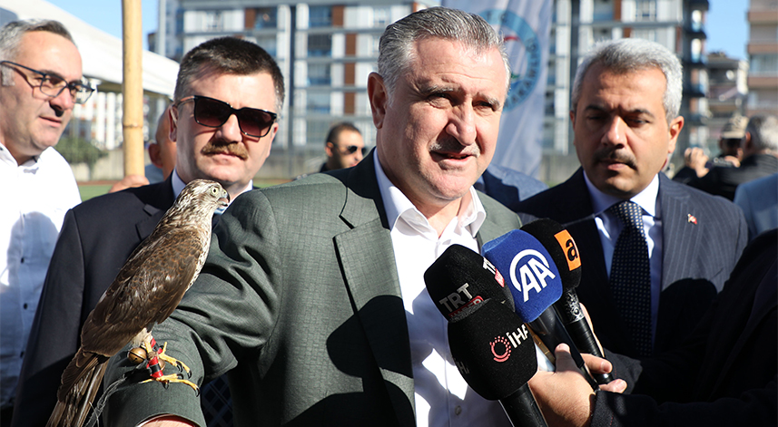 Rize'nin Ardeşen ilçesinde düzenlenen, "4. Atmaca Güzellik Beceri ve Doğaya Salım Festivali"ne katılan Bak, kolunda tuttuğu atmacayı bir süre sevdi, vatandaşlarla sohbet etti.