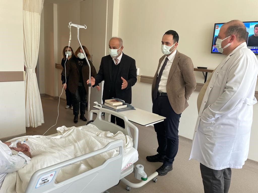 İl Müftüsü Ramazan Topcan, beraberindeki heyetle birlikte Aksu Eğitim ve Araştırma Hastanesi’nde tedavisi devam eden vatandaşları ziyaret etti.