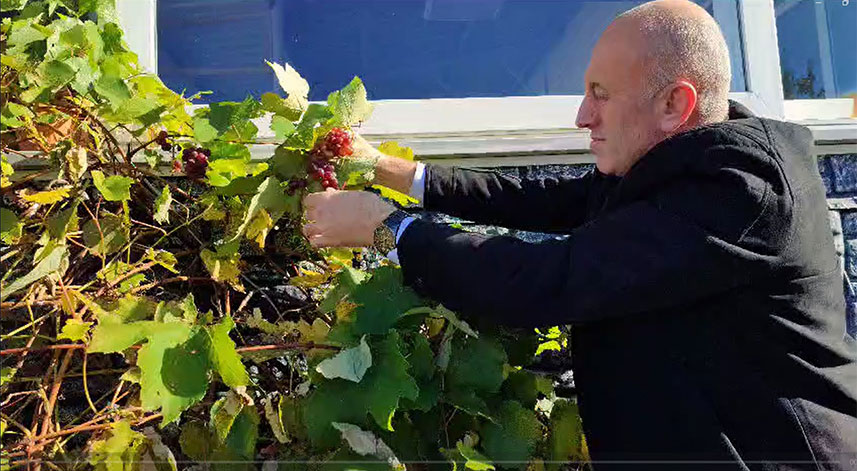 Giresun'un Eynesil ilçesinde bir iş yerinin duvarlarında bulunan asmadaki üzümler, görenleri hayrete düşürdü.