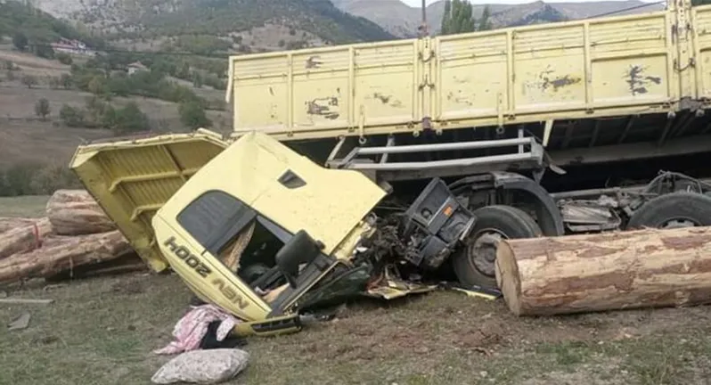 Kısa süre sonra devrilen kamyon, tomrukların altında kalarak kullanılamaz hale geldi.