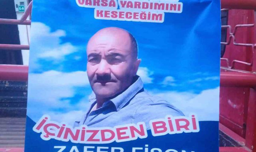 Giresun’da Taşlık köyü muhtarlığına aday olan Zafer Fison’un astığı pankartı görenler okuduklarına inanamadı. Köyde çiftçilik yaparak geçimini sağlayan 3 çocuk babası Fison’un astığı pankart ilgi odağı oldu.
