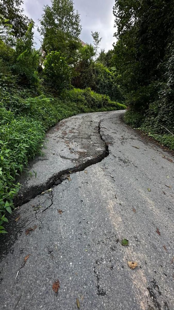 Geçtiğimiz haftalarda Çayeli'nde yağan şiddetli sağanak yağışın ardından meydana gelen heyelan nedeniyle ilçeye bağlı Beyazsu köyünün yolunda göçükler meydana geldi.