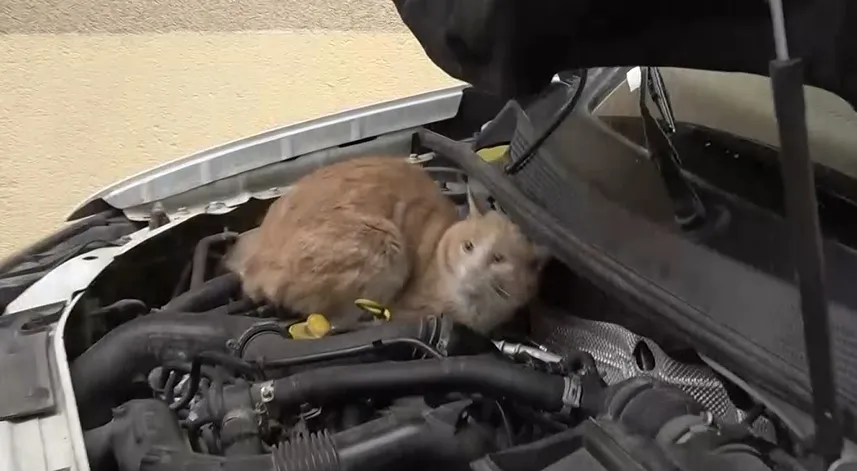 Ekiplerin plakadan ulaştığı otomobil sahibi aracın yanına gelerek kaputu açtı. Motor bölümündeki iki kedi, kaputun açılmasıyla arabadan atlayarak uzaklaştı.
