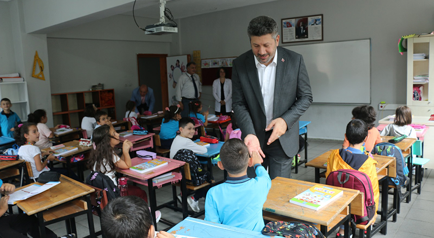Güneysu Belediye Başkanı Rıfat Özer ilçe sınırları içerisindeki ilkokulları gezerek ilkokul birinci sınıfa başlayan bütün öğrencilere kırtasiye malzemelerinden oluşan okul çantası hediye etti.