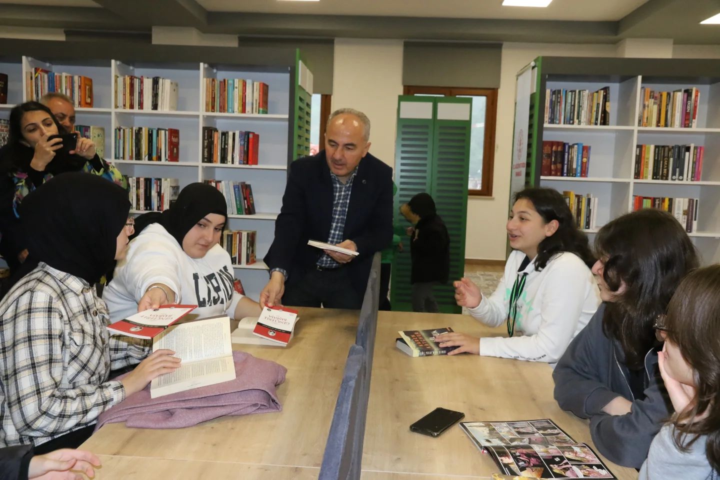 Protokol konuşmalarının ardından yıl içerisinde en fazla kitap okuyan vatandaşlara hediye takdim edildi. Ardından açılışı gerçekleştirilen kütüphanede incelemelerde bulunuldu.