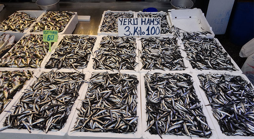 Balık Hali’nde tezgâhları bol miktarda süsleyen hamsinin 3 kilogramı 100 TL’den satılırken vatandaşın yoğun ilgisini çekiyor. Balıkçılar hamside son yılların en bereketli sezonunu yaşadıklarını belirtirken hamsinin bolluğu diğer balık çeşitlerinin fiyatını aşağıya çektiğini söylediler.