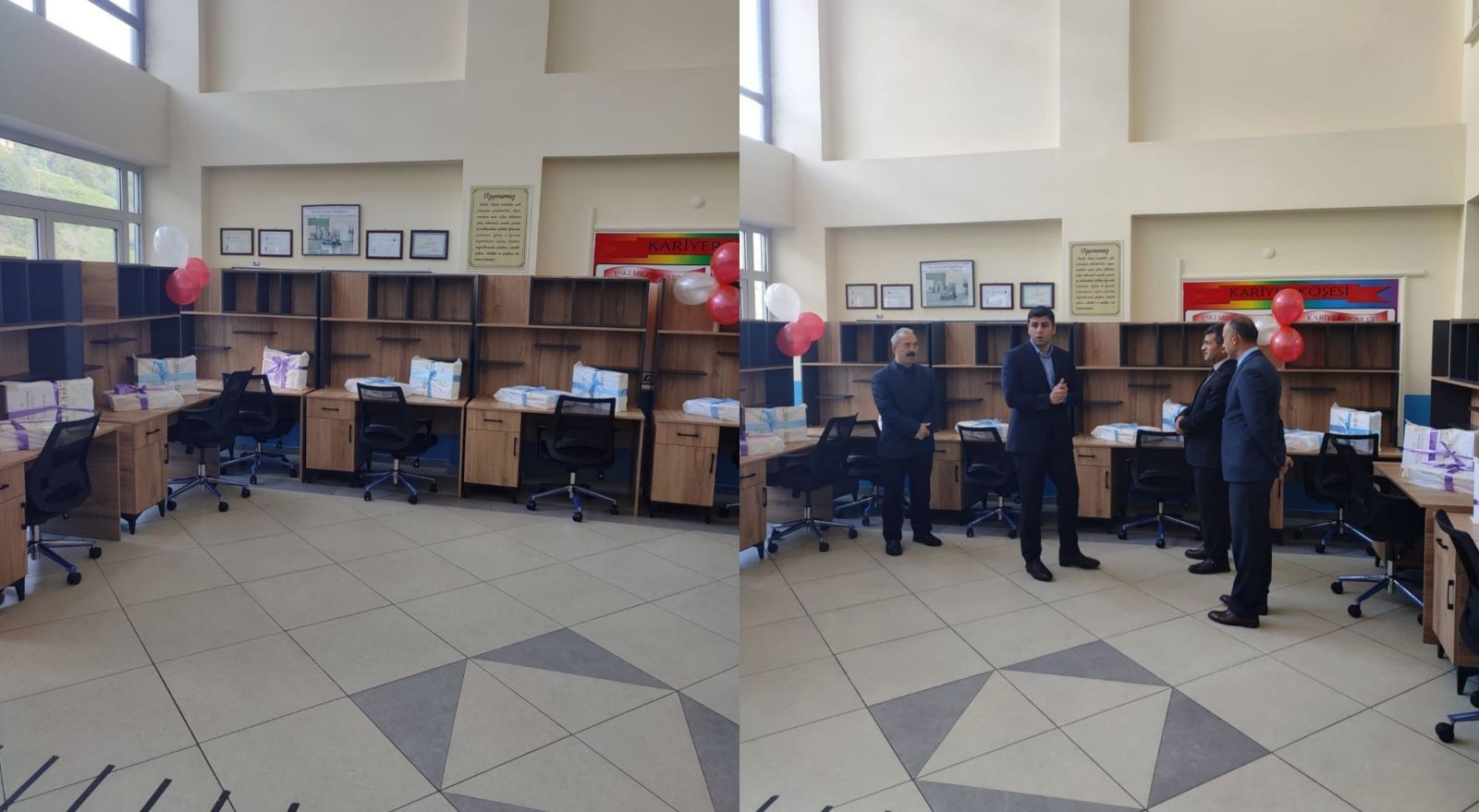Hemşin Kaymakamlığı'ndan yapılan açıklamada, kaymakamlık tarafından temin edilen çalışma masası, sandalye ve çeşitli çalışma materyallerinin ilçe okullarındaki ihtiyacı olan öğrencilere dağıtılmak üzere hazırlandığı kaydedildi.