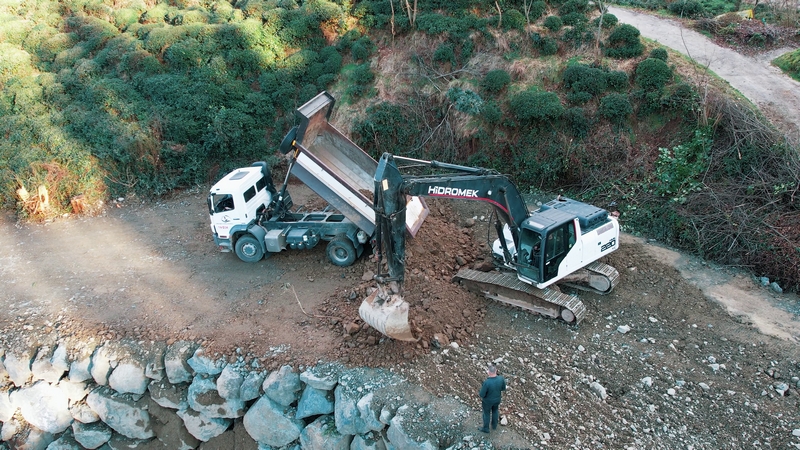 Açıklamada, yapılan çalışmalar kapsamında 417 kamyon toprak alandan bertaraf edildiği, 156 kamyon tahkimat kayaları ile yol platformu tekrar inşa edildiği ve 351 kamyon dolgu malzemesi ile hasar gören yolun yüksekliğinin planlanan seviyeye ulaştırıldığı kaydedildi.