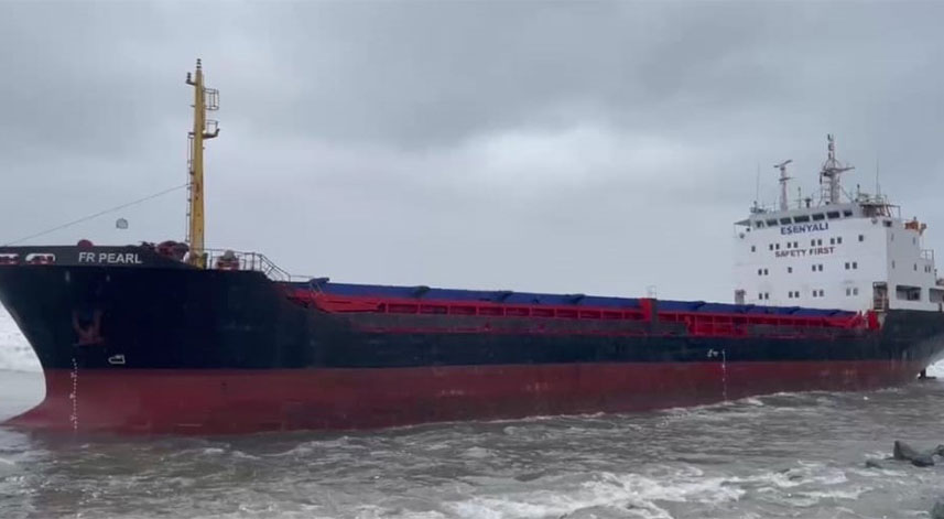 Esenyalı Gemi İşletmeciliği'ne ait "FR Pearl" isimli kuru yük gemisi dün Gürcistan'ın Batum Limanına yükünü boşalttıktan sonra boş olarak dönüşe geçerek akşam Hopa açıklarını demirledi. Gemi sabah saatlerinde fırtına ve dev dalgalar nedeniyle kıyıya sürüklenmeye başlarken, ardından kıyıya oturdu. Karaya oturan gemide personelin endişeli bekleyişi sürerken, gemi personelinin kurtarılması için çalışma başlatıldı.