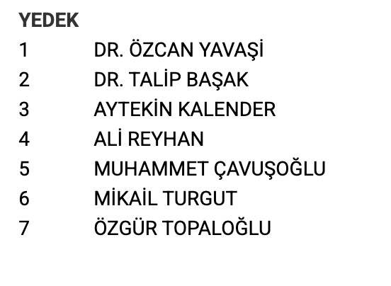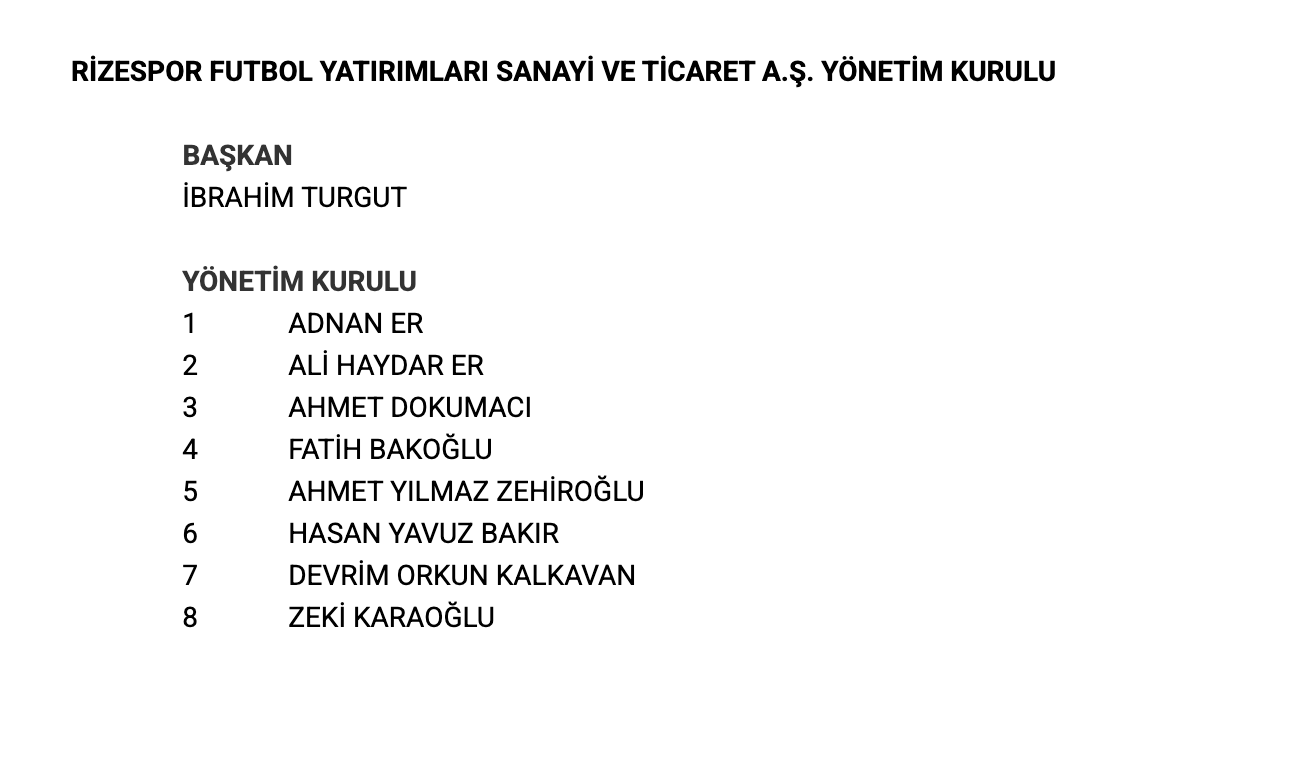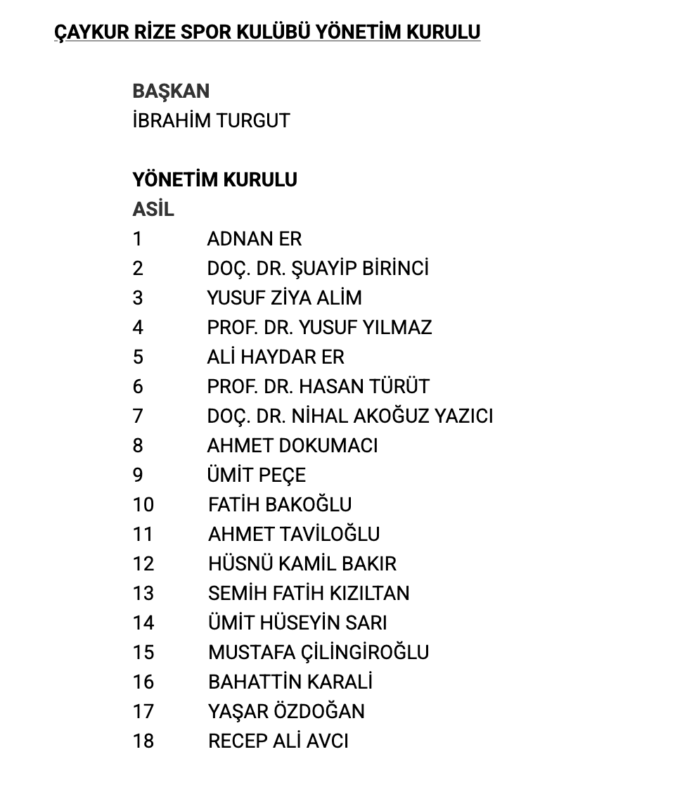 Başkan İbrahim Turgut'un listesinde Sağlık Bakan Yardımcısı Doç. Dr. Şuayip Birinci, RTEÜ Rektörü Prof. Dr. Yusuf Yılmaz ve Çay İşletmeleri (ÇAYKUR) Genel Müdürü Yusuf Ziya Alim, Rize İl Özel İdaresi Sekreteri Ümit Hüseyin Sarı da bulunuyor.