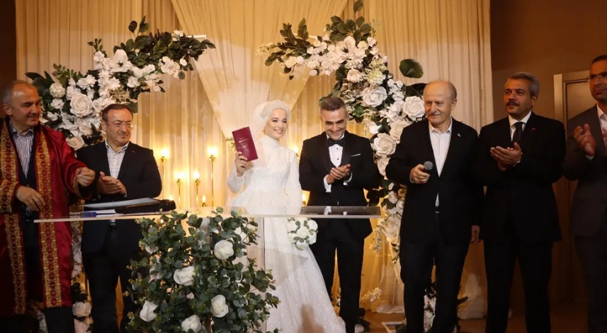 Çiftin nikahlarını Rize Belediye Başkanı Rahmi Metin kıyarken, şahitliklerini Çevre, Şehircilk ve İklim Değişikliği Bakan Yardımcısı Hasan Suver, Rize Valisi İhsan Selim Baydaş, ÇAYKUR Genel Müdürü Yusuf Ziya Alim ve İyidere Belediye Başkanı Saffet Mete yaptı.