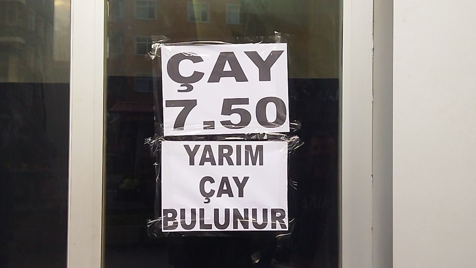 İlgi çekmek için yazının yazıldığını ifade eden çay ocağı müşterisi Hasan Kurkut ise “Ben buraya yarım çay içmeye geldim. Hem çay soğumamış oluyor. Yarım çay demek tam çay demek aslında. Ufak bardaktaki çay yarım çaydır. Büyük çay verirse tamdır. Bu durumda ilgi çekiyor. Yarım çay 7,5 lira demektir. Çayın 10 lira olması gerekirken 7 buçuk liraya satıyor. Gayet uygun bir fiyat” diye konuştu.