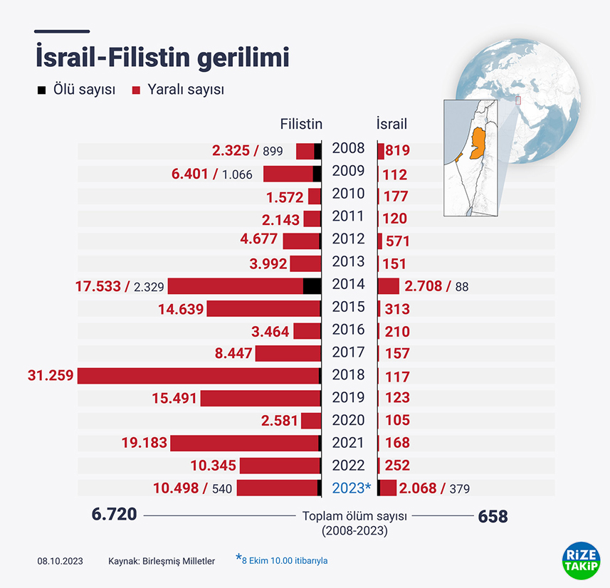 İsrail Kamu Yayın Kuruluşu KAN'ın haberine göre, Hamas'ın silahlı kanadı İzzeddin el-Kassam Tugayları'nın abluka altındaki Gazze Şeridi'nden İsrail'e başlattığı "Aksa Tufanı" isimli saldırıda en az 800 İsrailli öldü.