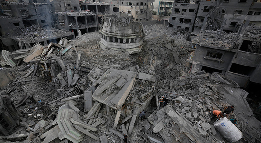 İsrail savaş uçaklarının düzenlediği hava saldırılarında Gazze'nin batısındaki El-Yermuk Camisi yıkıldı.