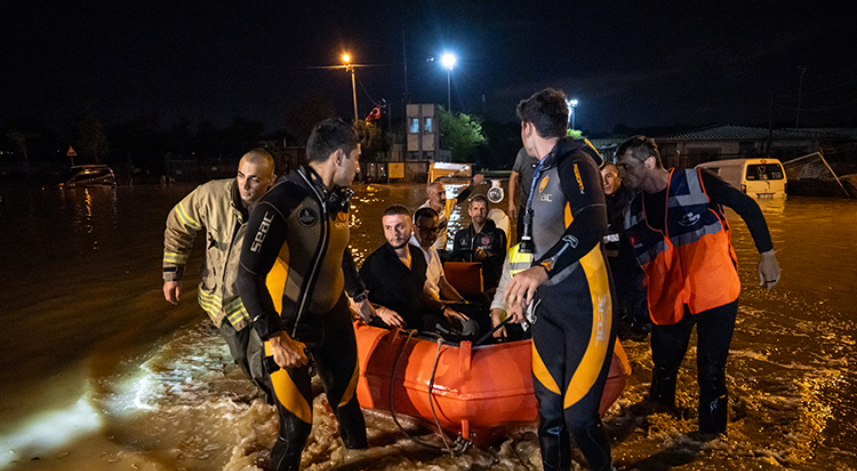 Ardından bölgeye gelen botlar aracılığıyla mahsur kalan vatandaşları kurtarma çalışmaları başlatıldı.