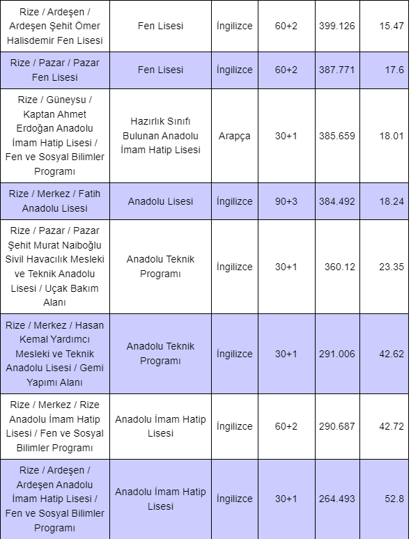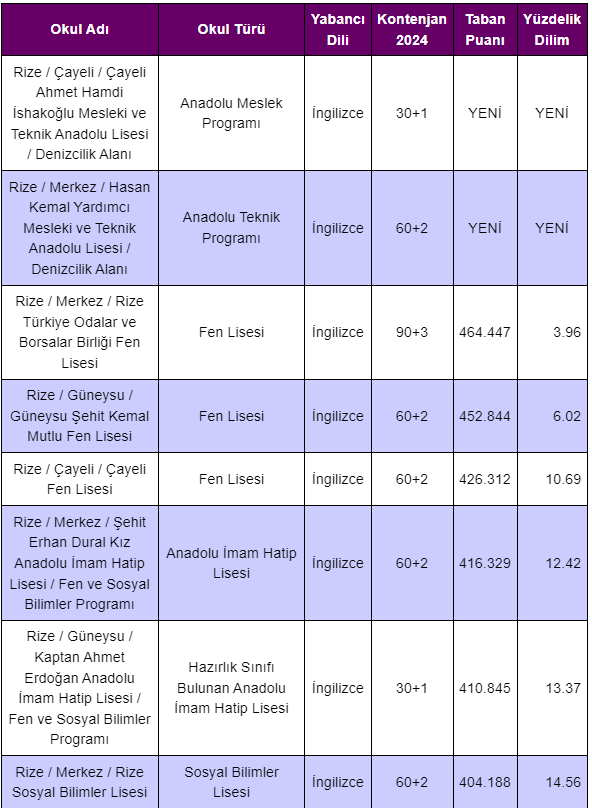 LGS 2024 taban puanları ve yüzdelik dilimleri belli oldu. İşte Rize lise LGS 2024 taban puanları.