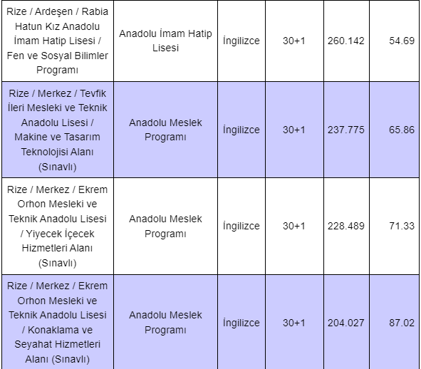 Rize’de hangi lise kaç puan ve yüzdelik dilim ile alıyor? Rize’deki liselerin 2024 taban puanları açıklandı.