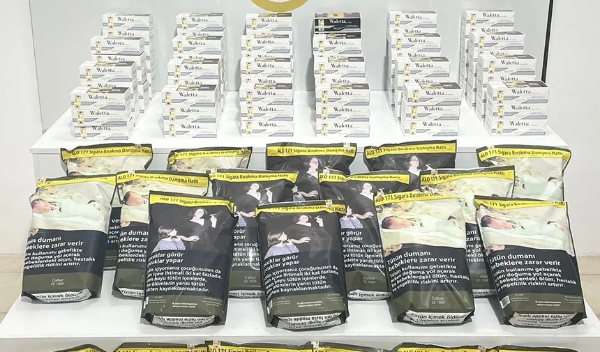 Adreste arama yapan ekipler, 21 bin 600 gümrük kaçağı boş makaron (filtreli sigara kağıdı) ve bir kilogramlık 20 sahte bandrollü tütün ele geçirdi.