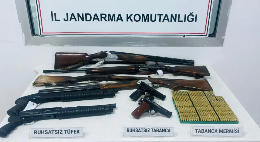 Adreslerde arama yapan ekipler, 6 ruhsatsız av tüfeği, 2 ruhsatsız tabanca ile 742 tabanca fişeği ele geçirdi.