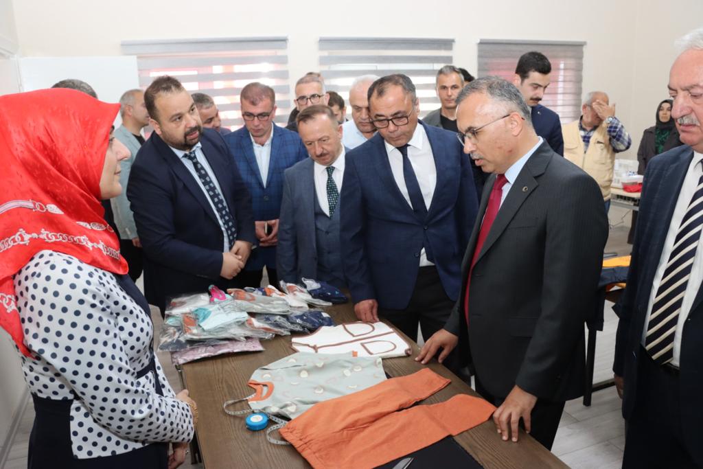 Açılış kurdelesinin kesilmesiyle köy yaşam merkezini gezen protokol üyeleri, kursiyerlerden ürettikleri ürünler hakkında bilgiler alarak, çalışmalarında başarılar diledi.