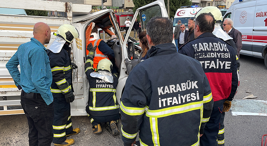 100. Mahallesi Jandarma Kavşağı'nda kırmızı ışık ihlali yaptığı öne sürülen M.E'nin kullandığı 78 M 0029 plakalı şehir içi yolcu minibüsü ile H.A. idaresindeki 78 ABG 060 plakalı kamyonet çarpıştı.