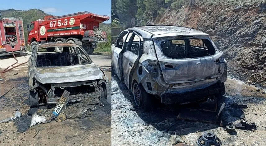 Ekiplerce söndürülen yangında araç kullanılamaz hale geldi.