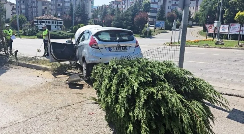 M.A.N. idaresindeki 78 ABE 615 plakalı otomobil, Adnan Menderes Bulvarı'nda kontrolden çıkarak yol kenarındaki tel örgüye ve ağaçlara çarptı.