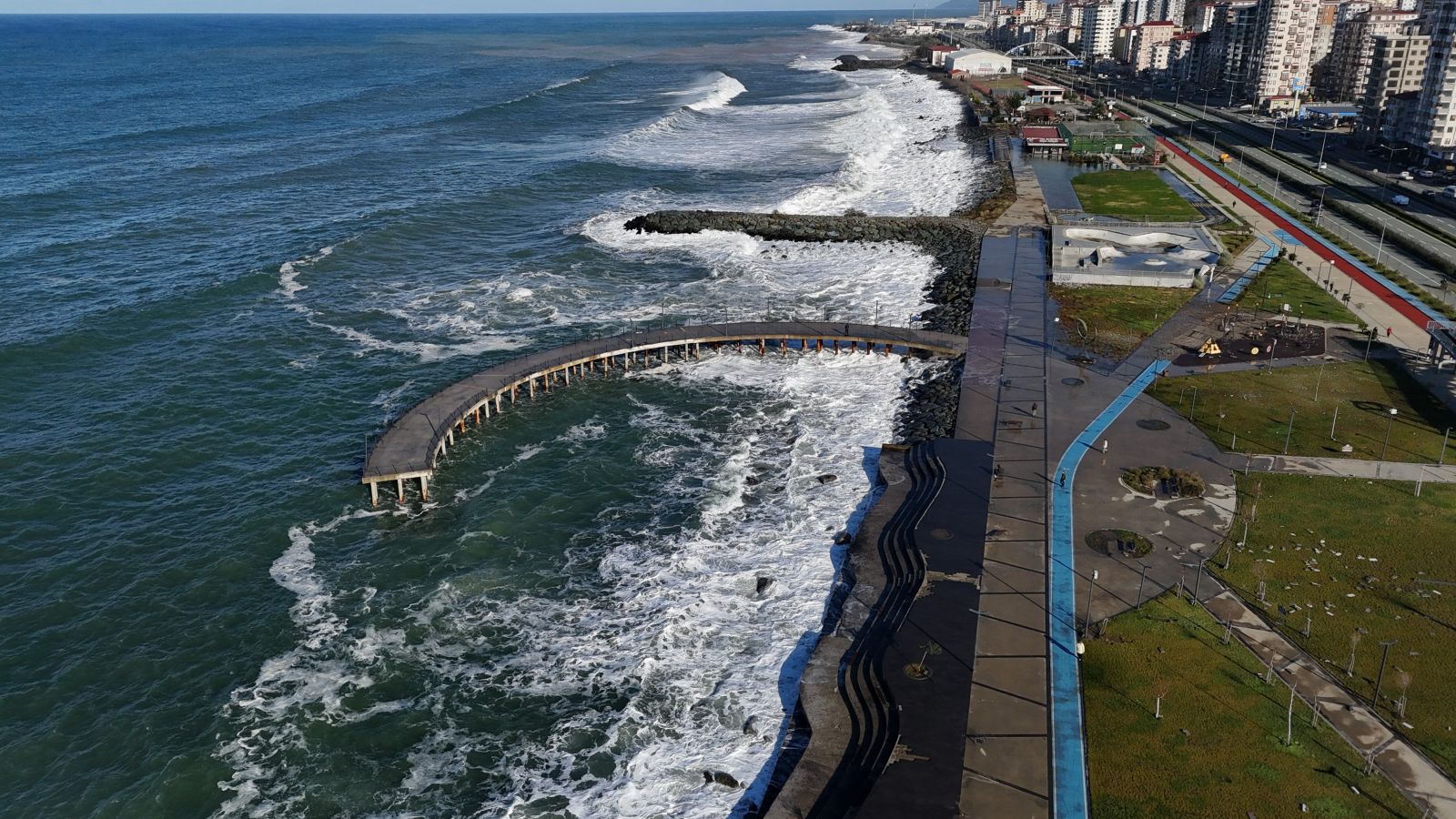 Karadeniz’de etkili olan fırtınanın getirdiği dalgalar Rize Sahili’nde havadan görüntülendi.