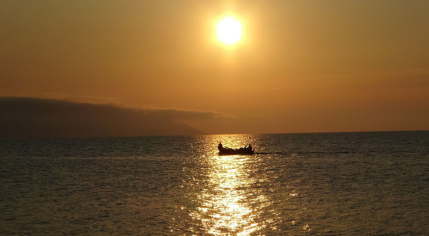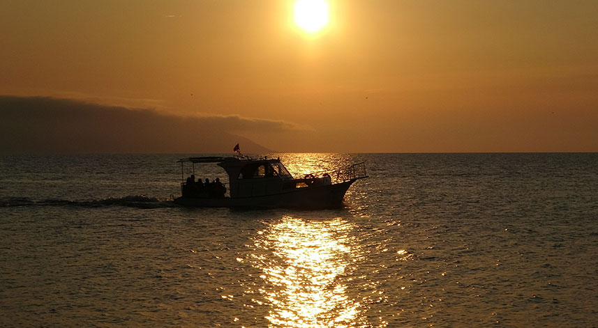 Özellikle günbatımına doğru tekne gezintilerine yoğun ilgi gösteren vatandaşlar, muhteşem görüntünün tadını çıkartmaya çalışıyor. Ganita’da bulunan limandan belirli saatlerde hareket eden gezinti teknesi özellikle sahile yakın seyrederek yol alırken, havaların çok sıcak olmasıyla birlikte gemiye olan ilginin daha da arttığı belirtildi. Küçük balıkçı tekneleri de günbatımına doğru denize açılmayı tercih ettikleri gözlenirken, o anlar objektiflere yansıdı.