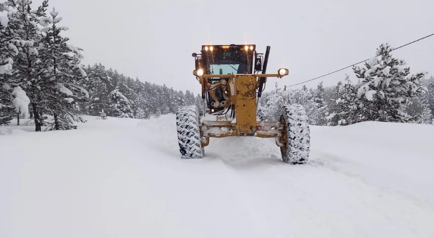 Bayburt'ta kar yağışının etkiliği olduğu Aydıntepe ilçesinde 13 köy yolu ulaşıma kapandı.