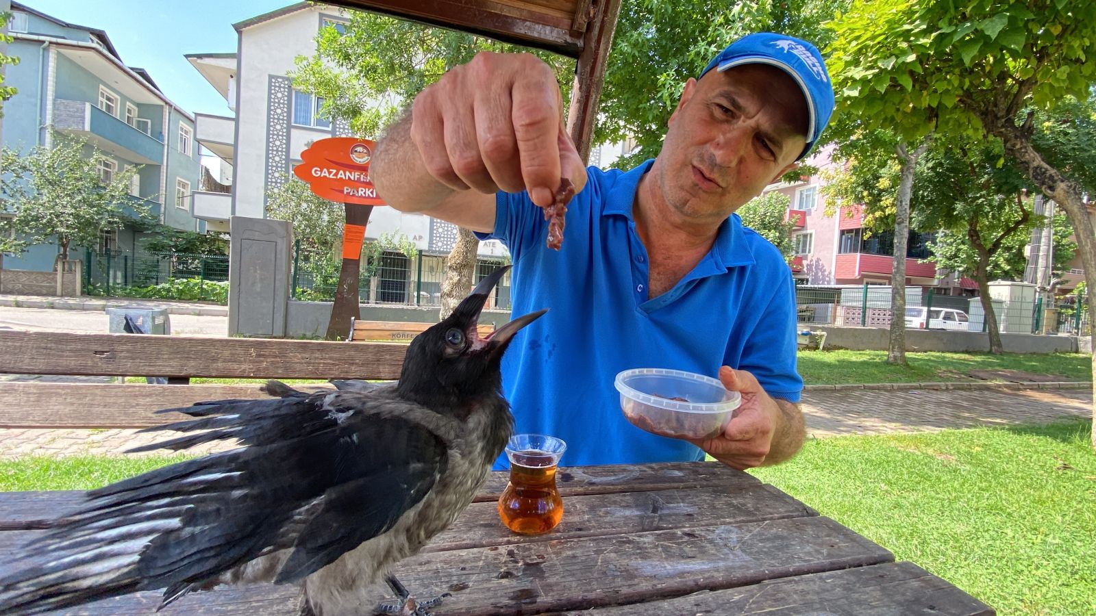 Kocaeli'de yolda gördüğü yaralı yavru kargaya kayıtsız kalamayan Ömer Tek, kargayı 3.5 ay besliyor. Kargayı evladı gibi gördüğünü söyleyen Tek, kargayı Rize çayı ve etle besliyor.