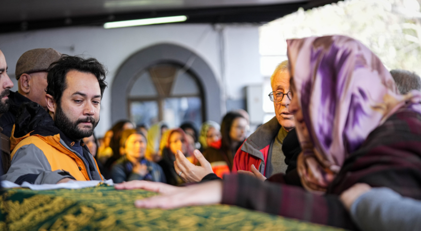 Cami avlusunda yer kalmaması üzerine imamın çağrısıyla cenaze törenine katılanların bazıları caminin içinde namaz kıldı.