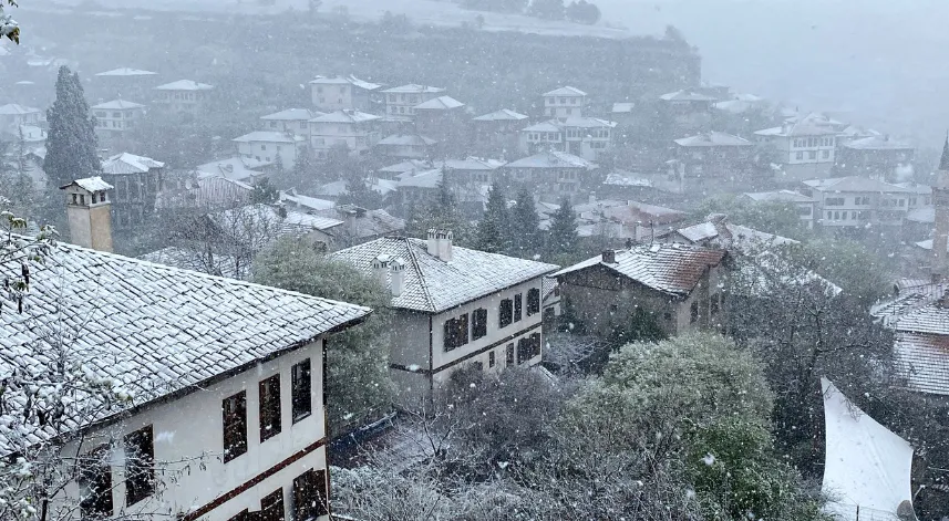 UNESCO Dünya Miras Listesi'nde yer alan Karabük'ün Safranbolu ilçesindeki tarihi konakların çatıları, kar yağışıyla beyaza büründü.