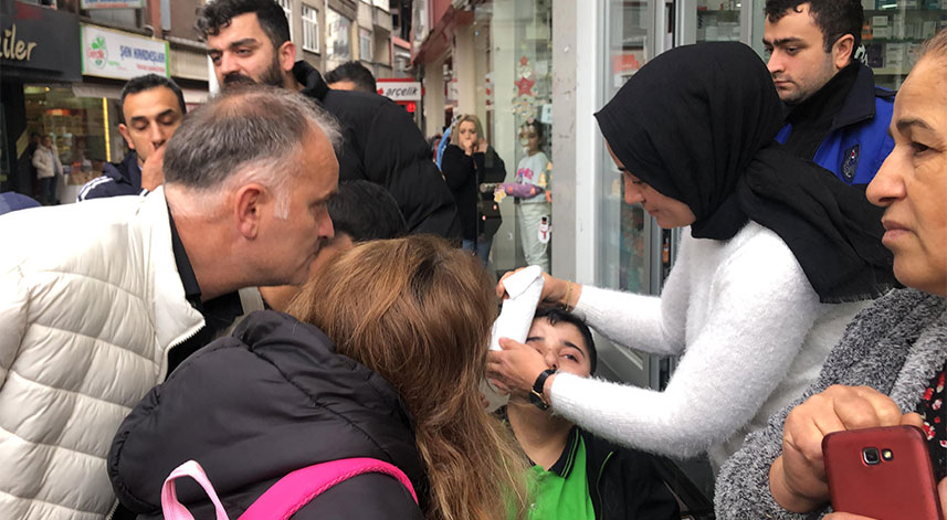 Olay, Pazar ilçe merkezinde meydana geldi. Alınan bilgiye göre, okuldan çıkan 12 yaşındaki Eyüp Ş., bir köpek tarafından kovalanmaya başlandı. Köpekten kaçmaya başlayan çocuk, başka bir köpeğe takılıp yere düştü. Yere düştüğü esnada yoldan geçen aracın sürücüsü çocuğu fark edip hemen durdu. Düşmenin etkisiyle kafasından hafif yaralanan 12 yaşındaki çocuk etrafta bulunan vatandaşlar tarafından buzla müdahale edildi. Vatandaşlar tarafından 112 acil çağrı servisine yapılan ihbarın ardından olay yerine sağlık ekipleri sevk edildi. Olay yerine gelen sağlık ekipleri çocuğu tedbir amaçlı ambulans ile hastaneye kaldırıldı. Çocuğun köpek tarafından kovalandığı anlar ise çevrede bulunan güvenlik kamerası tarafından anbean kaydedildi.