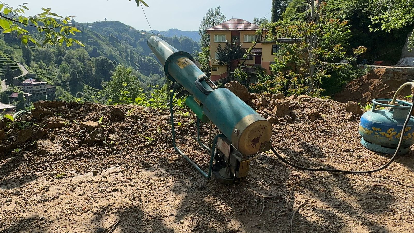 Rize'nin Çayeli ilçesinde Muharrem Çelik, köye inip, arı kovanlarına dadadan ayılara karşı boru şeklinde olup, hava ve gaz basıncı ile çalışan sistemi devreye soktu. Zaman ayarlı sistemden çıkan ses ile ayıların kaçmasını sağlayan Çelik, "Yarım saat, 15 dakikada gibi dereceleri var. O sürede bir patlama yapıyor, adını 'havan topu' koyduk" dedi.