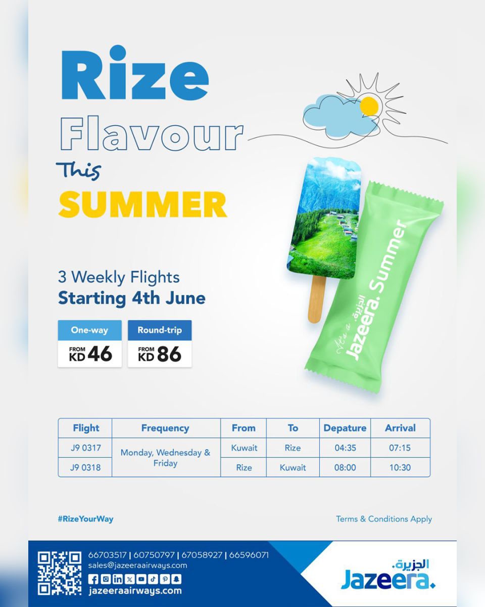 Jazeera Airways, 4 Haziran 2025’ten itibaren haftada üç gün düzenlenecek Rize-Kuveyt seferlerini tanıtan bir kampanya başlattı. Jazeera başarılı bir operasyon yönetebilir ise Rize’nin yıldızı Ortadoğu’da çok ciddi şekilde parlayacak.