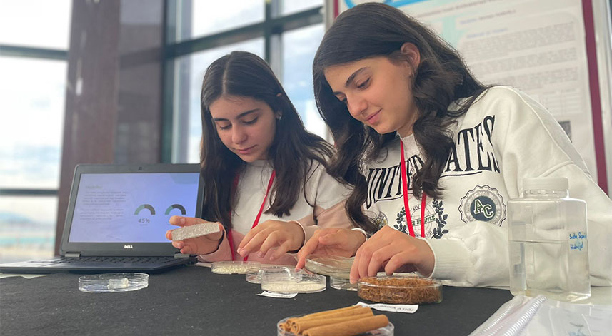 Faruk Başaran Bilim ve Sanat Merkezinde kimya öğretmeni Bahtışen Ramoğlu danışmanlığındaki Ecem Naz Yılmaz ve Ayşegül Çabuk, "Çay Fabrikası Atığından Hemiselüloz Esaslı Antibakteriyel Hidrojel Eldesi ve Karakterizasyonu" projesini hazırladı.