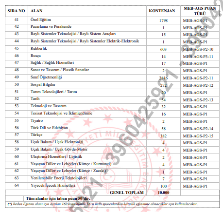 10 bin öğretmen alımına ilişkin branş bazlı kontenjan dağılımı da başvuru kılavuzunda yayımlandı. Adaylar, kendi alanlarına ait kontenjan sayılarına ve başvuru detaylarına kılavuz üzerinden ulaşabilecek.