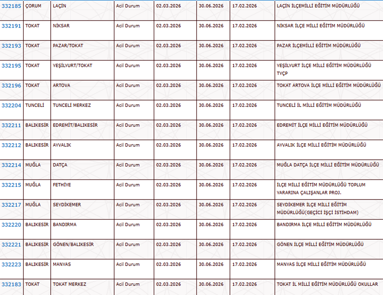 Yetkililer, önümüzdeki günlerde diğer iller için de yeni ilanların yayımlanabileceğini bildirdi.