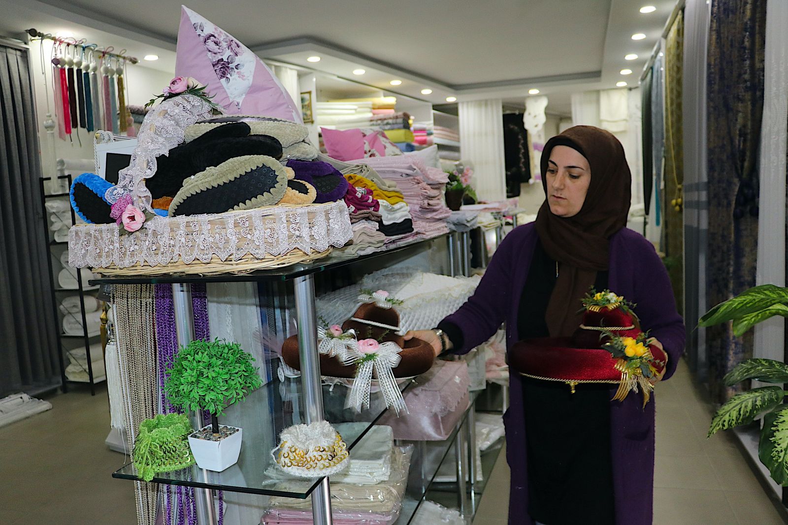 İş yerinde gelinlik hariç çeyiz için gerekli tüm ev tekstili ürünleri yaparak sattıklarını kaydeden Demir, şöyle konuştu: