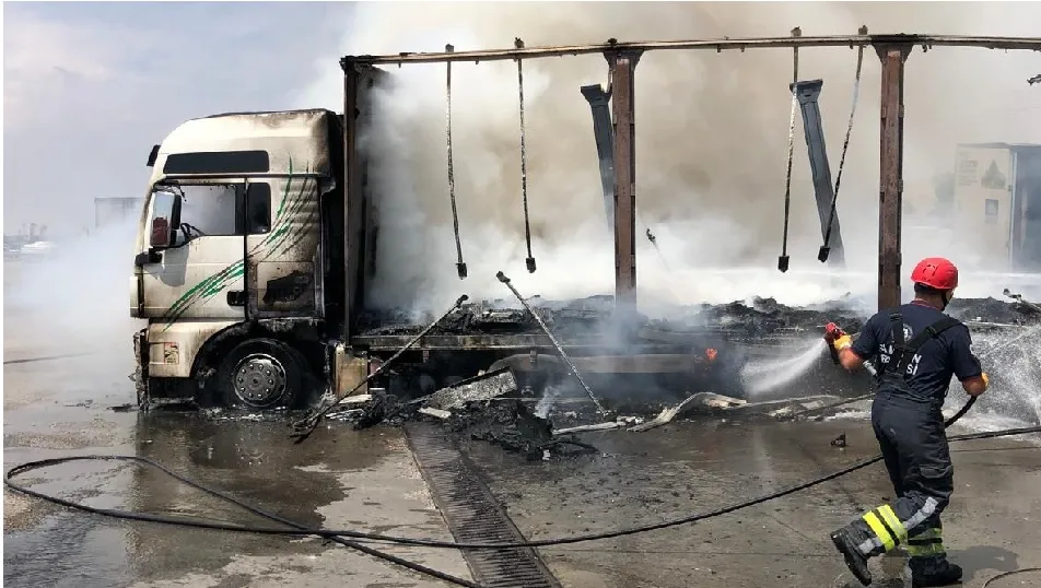 Kısa sürede büyüyen alevler, tırın çekici ve dorsesini tamamen sardı.