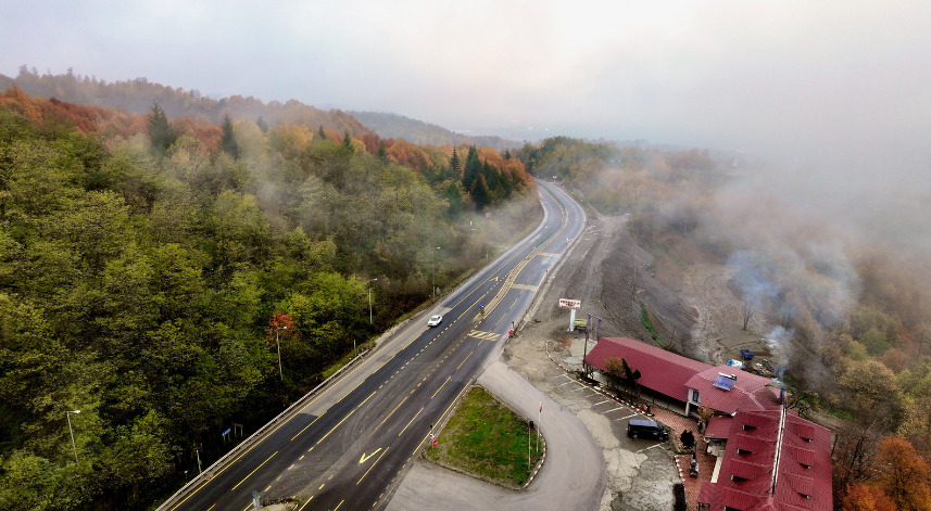 Türkiye'nin en önemli geçiş noktalarından Bolu Dağı kesiminde yer alan dinlenme tesisleri, güzergahtan geçen sürücülere zirveden manzara izleme imkanı sunuyor.