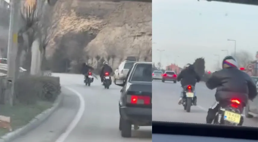 Karabük’te Şehit Ateşe Reşat Moralı Bulvarı’nda seyir halinde olan araç sürücüleri ise, sol şeritte giderek trafiği yavaşlatan elektrikli motosiklet sürücüsünün şaşkınlığını yaşadı. Sürücüler duruma tepki gösterirken, olay anı cep telefonu kameralarına yansıdı.