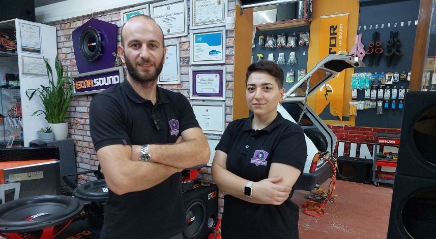 Ses sistemleri üzerine bir çok işlemi sorunsuz halledebildiğini kaydeden Kadın Ses Usta Ebru Yıldız “Ben bu mağazanın ön muhasebe finans departmanında hizmet sağlamaktayım. Merakımdan burada bir şeyler öğrendim. Amfilerin bloklarını, dizaynlarını hazırlayabiliyorum. Aynı şekilde kablo, tesisat hazırlamada yardımcı olabiliyorum. Araçlara multimedya montaj hizmeti sağlayabiliyorum. Hoparlör soketlerini hazırlayabiliyorum. Yani elimden geldiğince bir şeyler yapmaya çalışıyorum. Tamamen meraktan yaptığım şeyler bunlar. Çünkü bir şey yapmak istediğimde yapacağımı herkes biliyor. Bazı müşterilerimiz bu gayret içerisinde beni gördüklerinde hani şaşırarak bakıyorlar. Kendi aralarında diyalogları oluyor. Ben bunları fark ediyorum” dedi.