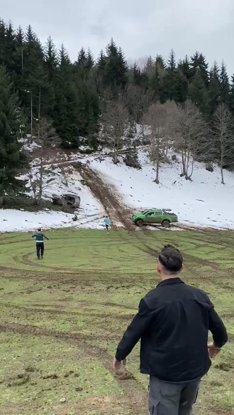Olay ilçeye bağlı İbrikli köyünde meydana geldi. Edinilen bilgiye göre, arazili araçlarıyla ormanlık alanda mini gösteri yapan bir grup, karla kaplı dik yamaçtan çıkmaya çalıştılar.